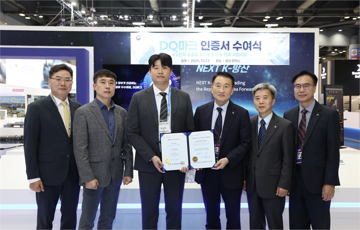 국방기술품질원(기품원)은 K2전차 주요 부품 생산업체 30개 업체에 'DQ마크' 공식 인증서를 수여했다고 23일 밝혔다. DQ마크(Defense Quality Mark)는 국산 방산 품목의 우수한 품질을 공식 보증하는 제도로, 국내 기업의 기술력·품질·수출 잠재력을 종합적으로 심사해 인증을 부여한다. 이는 해외