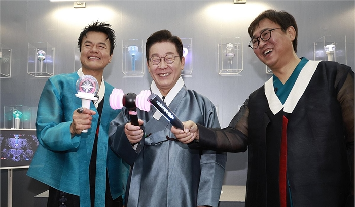 대중문화교류委 출범 행사서 "무한한 잠재력…'팔길이 원칙' 지키겠다"응원봉 보며 "지난 겨울에 많이 봤던 것"…K팝 문화에 "팬 주권주의" 박진영 "2027년부터 매년 한국서 '페노미논' 시상식·페스티벌 개최" 이재명 대통령은 1일 오후 경기 고양 킨텍스 2전시장에서 열린 대통령 직속 대중문화교류위원회 출범행사에 참석해