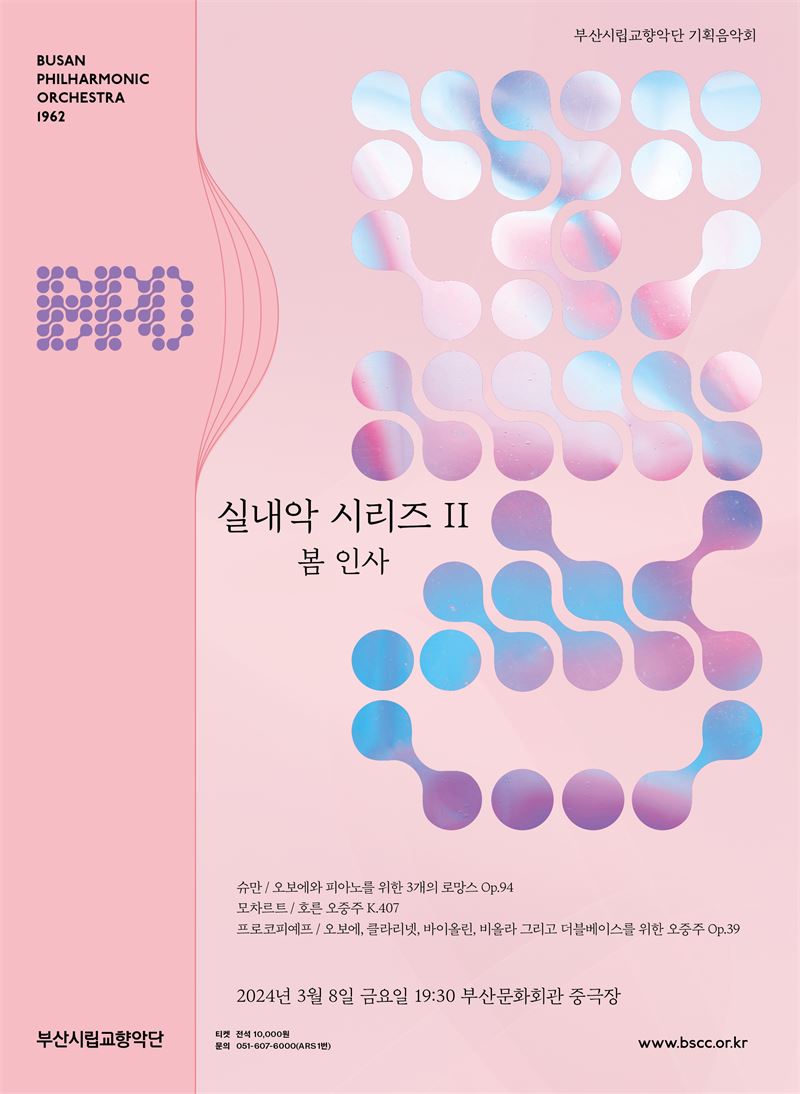 부산시립교향악단 기획음악회 [실내악 시리즈 Ⅱ] 가 3월을 맞아 ‘봄 인사’라는 부제로 봄 향기 가득한 무대를 마련, 오는 3월 8일(금) 오후 7시 30분 부산문화회관 중극장에서 열린다.