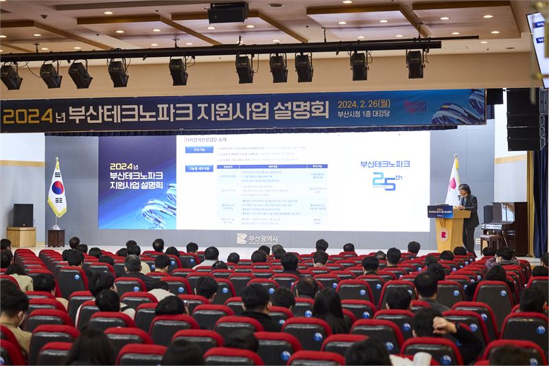 부산테크노파크(원장 김형균)는 지난 26일 부산시청 1층 대강당에서 부산 소재 기업인 및 관계자 400여 명이 참석한 가운데‘2024년 부산테크노파크 지원사업 설명회’를 성황리에 마쳤다.