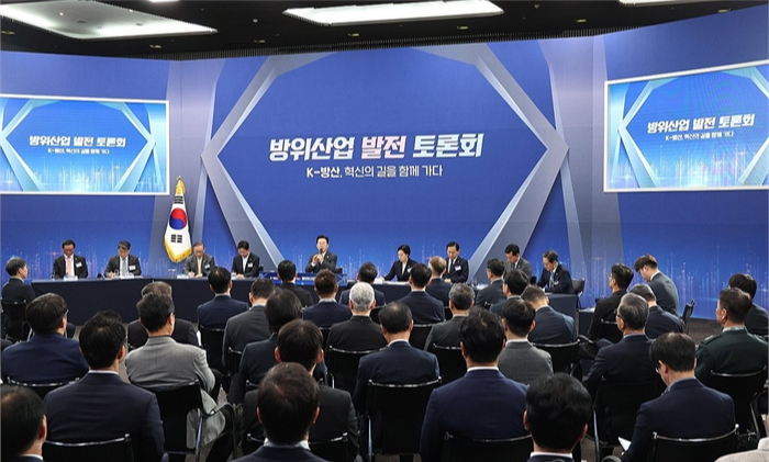 이재명 대통령, 방위산업 발전 토론회 이재명 대통령이 20일 경기 고양시 킨텍스에서 방위산업 발전 토론회를 하고 있다. / 사진=대통령실통신사진기자단