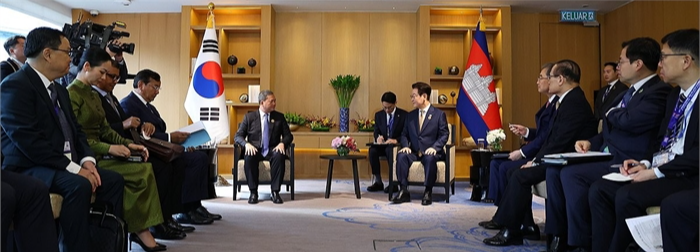 둘째 날인 이날 오전 훈 마네트 캄보디아 총리와 정상회담을 통해 양국의 전략적 동반자 관계 발전 및 교류 확대 방안을 논의했다.