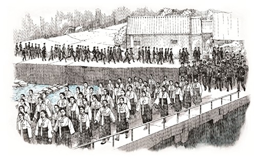 양림교를 건너는 시위대열 펜 일러스트(영화 '이름없는 별들')./ 사진=국가보훈부