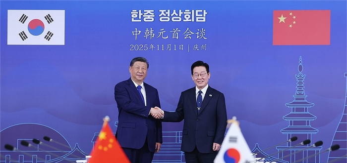한중정상, 정상회담 기념촬영 이재명 대통령과 시진핑 중국 국가주석이 1일 경북 국립경주박물관에서 한중 정상회담에 앞서 기념 촬영을 하고 있다./ 사진= 한중정상회담