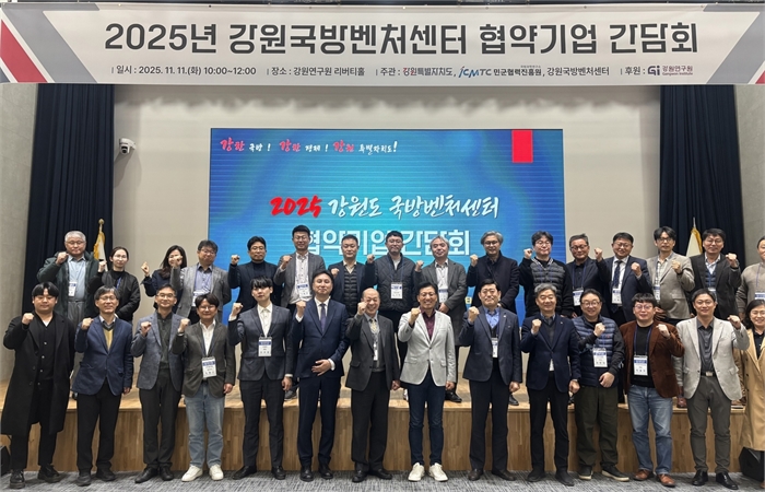강원특별자치도는 지역 중소·벤처기업의 국방산업 진출 확대와 지원사업 정보 공유를 위해 11일 강원연구원에서 '2025 강원국방벤처센터 협약기업 간담회'를 개최했다.