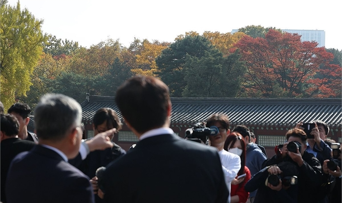 '고층건물 개발 진행된다면' 최휘영 문화체육관광부 장관과 허민 국가유산청장이 7일 역사문화환경 보존지역 바깥에서의 개발 규제 완화 조례에 대한 대법원 판결과 관련해 서울 종묘를 찾아 전경을 점검하고 있다.지난 6일 대법원은 문화유산법 해석상 보존지역 바깥에 대해서까지 국가유산청과 협의해 조례를 정해야 한다고 볼 수는 없다며 해당 지역의 개발 규제를 완화한 서울시 조례 개정이 법령 우위 원칙(법령이 조례보다 위에 있다는 원칙)에 위반되지 않는다고 판단했다./ 사진=국가유산청