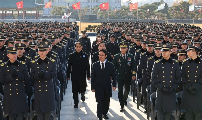 이어 "일생을 독립운동에 바치신 선열들의 정신은 대한민국 국군으로 계승돼 조국을 지키는 힘이 되고 있다"며 "조국을 지키는 삶을 선택한 육군사관학교 생도 여러분과 기념식을 함께하게 돼 더욱 뜻깊게 생각한다"고 말했다.