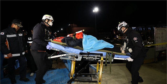 구조되는 퀸제누비아2호 탑승객 19일 오후 전남 목포시 목포해양경찰서 전용 부두로 여객선 퀸제누비아2호 탑승객이 구조되고 있다.267명이 탑승한 퀸제누비아2호는 이날 오후 8시 17분께 전남 신안군 장산도 남방 족도에 좌초됐다./ 사진=보건복지부