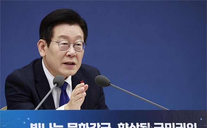 발언하는 이재명 대통령 이재명 대통령이 16일 정부세종컨벤션센터에서 열린 문화체육관광부(국가유산청)·국민권익위원회 업무보고에서 발언하고 있다./ 사진=대통령실통신사진기자단
