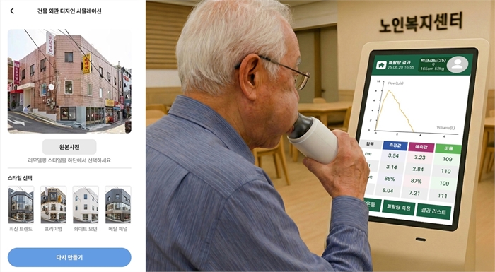 건물 리모델링 예상 애플리케이션(왼쪽), 휴대용 폐 기능 측정 기기./ 사진=부산디자인진흥원