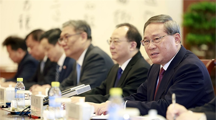발언하는 리창 중국 총리 리창 중국 국무원 총리가 6일 베이징 조어대에서 진행된 이재명 대통령과의 면담에서 발언하고 있다.